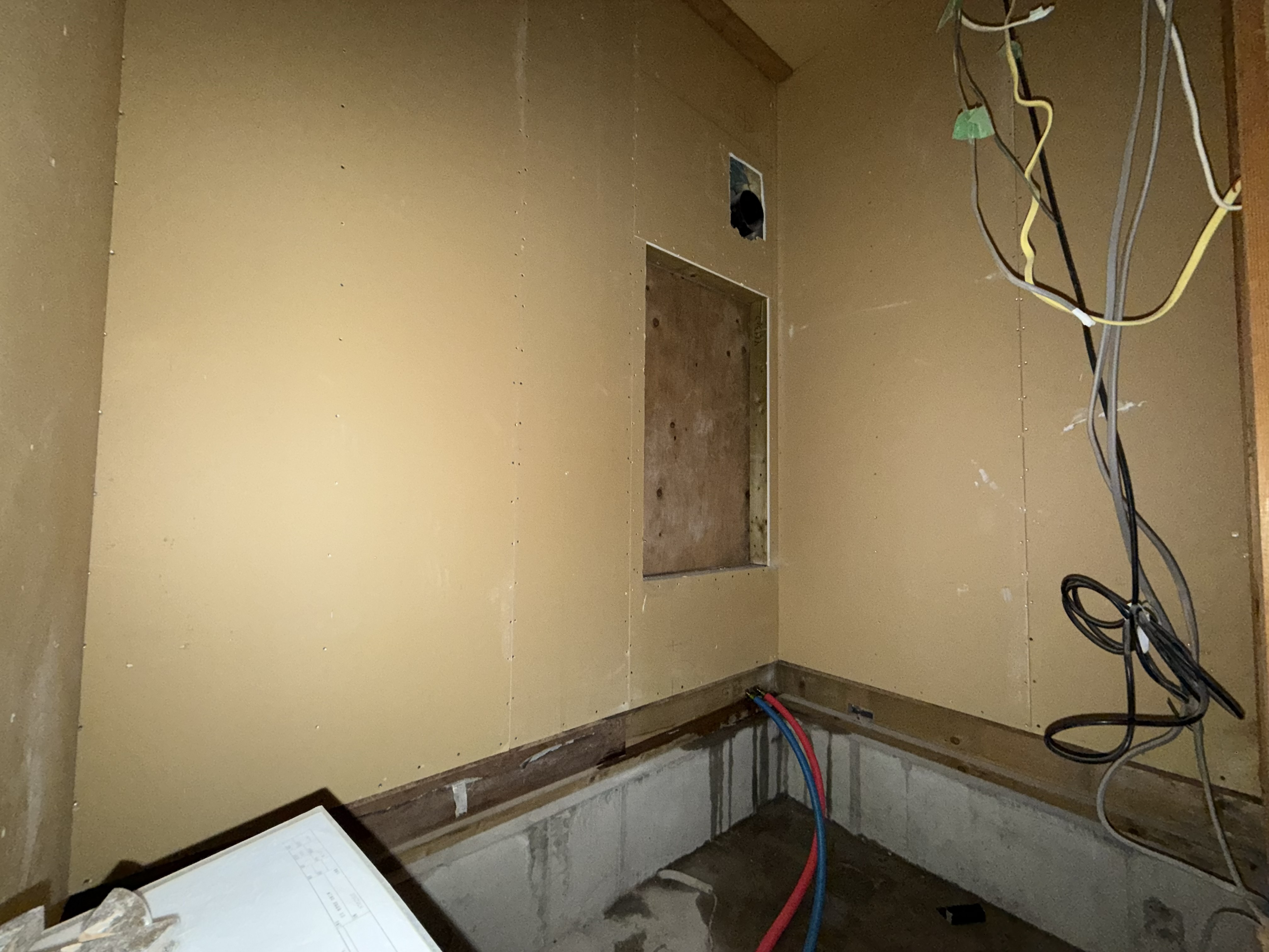 壁はグラスウール充填、床にはボード系断熱が仕込まれていました。
