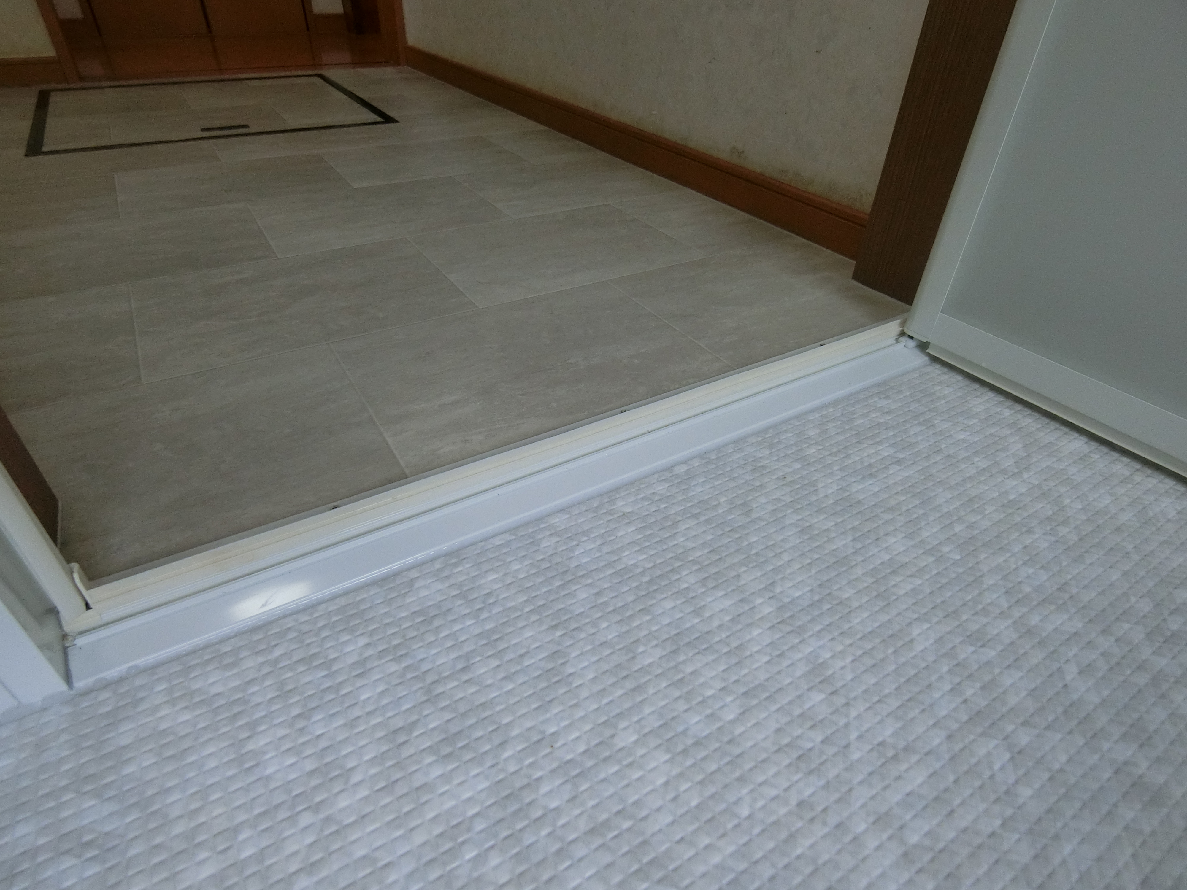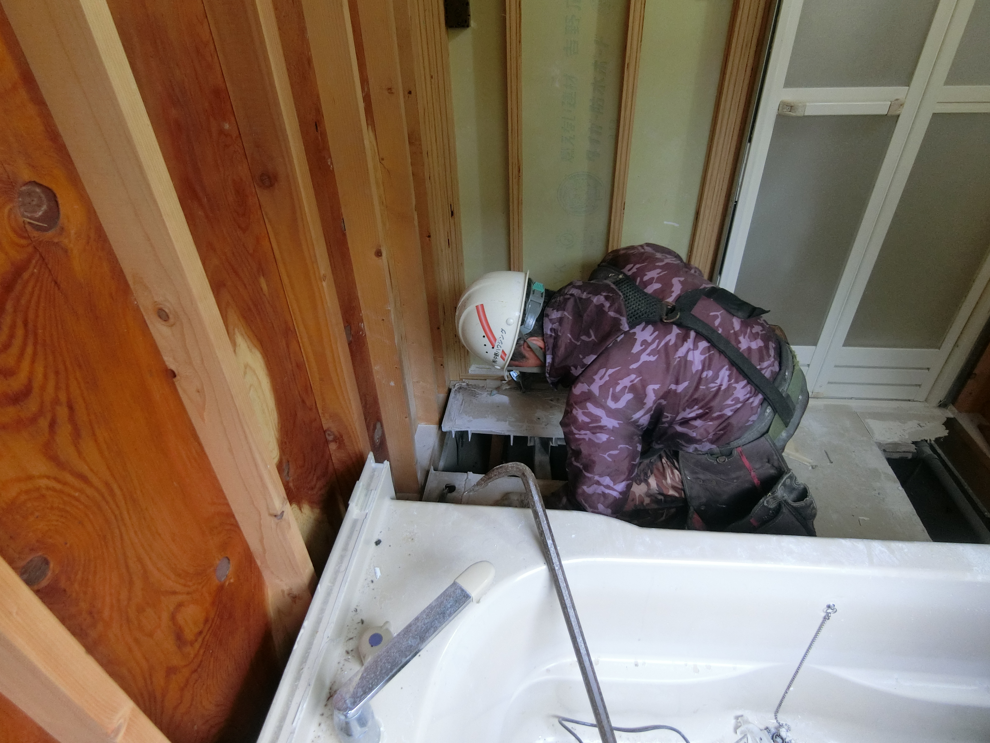 浴室と脱衣室の間に本来あるべき基礎がなく、「束(つか)に大引き」という仕様だったのです。