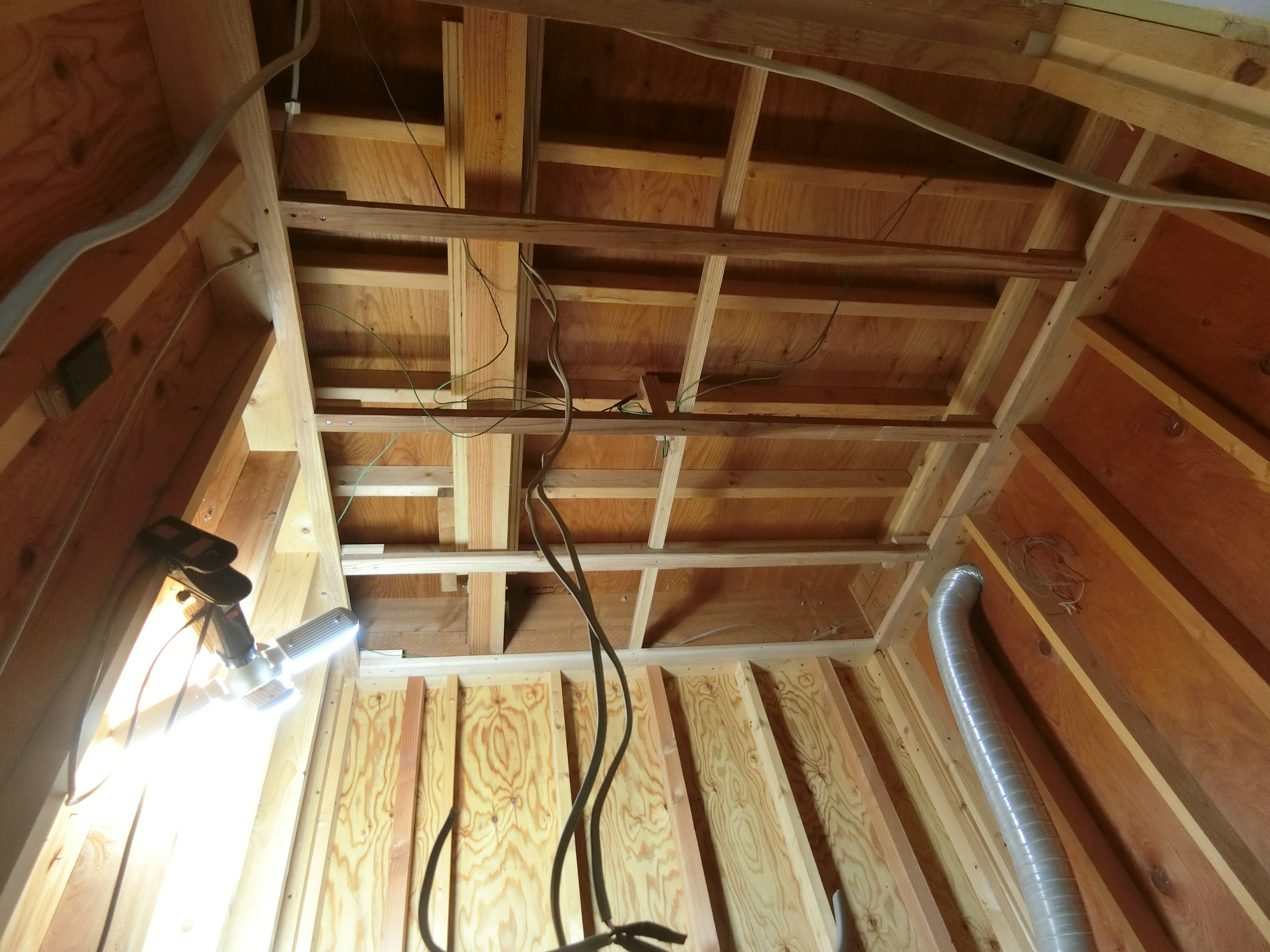 天井:下地を組んで断熱材を敷き込みます。